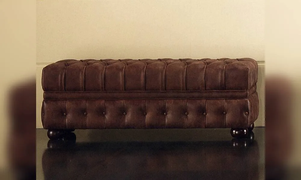 Прямоугольная банкетка. Обита в технике капитоне. Возможны другие варианты отделки и обивки, в том числе в ткани клиента.