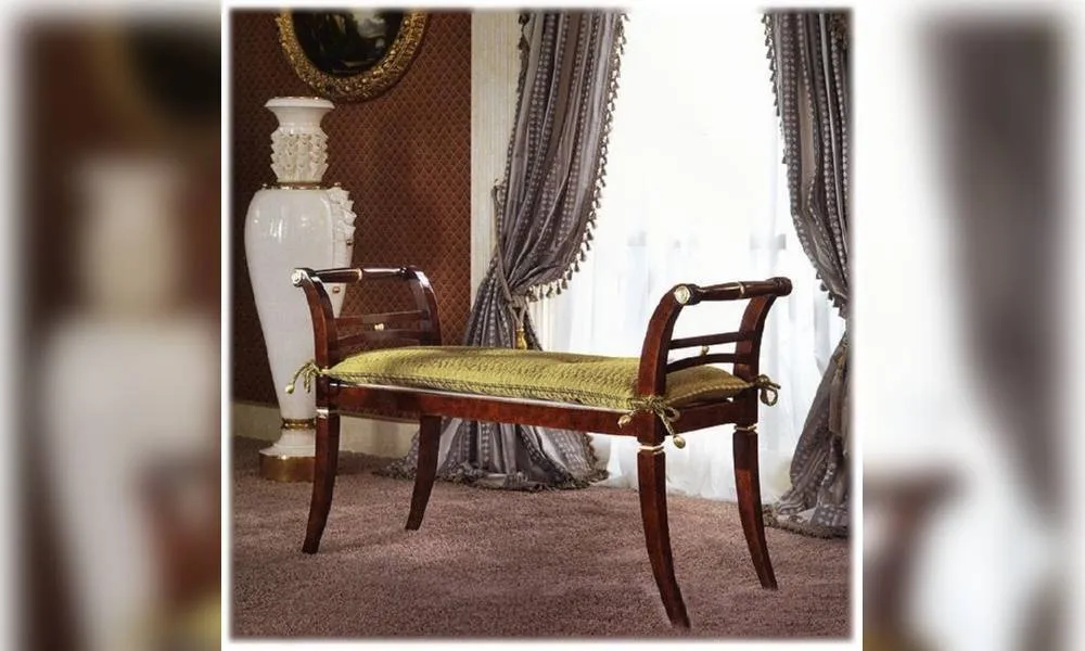 Банкетка. Декоративные профили с эффектом устаревшего золота. Наполнение - полиуретан. Декор ручной работы. Возможны другие цветовые варианты обивки и обивки.