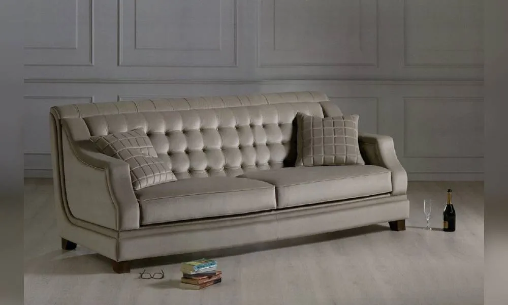 Трехместный диван. Спинка обита в технике капитоне. Возможны другие варианты отделки и обивки.