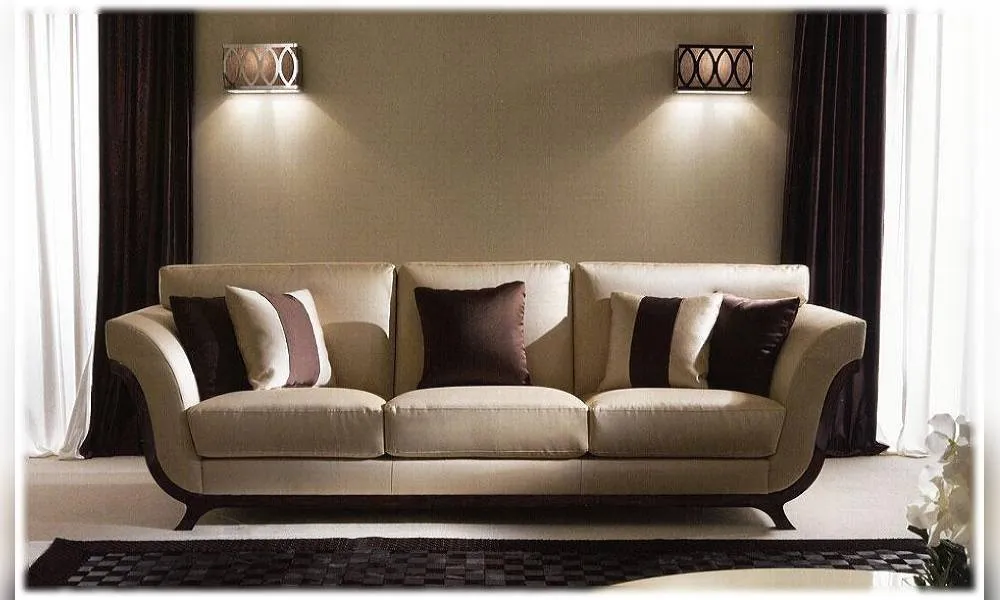 3-х местный диван. Деревянное декоративное обрамление. Наполнение - полиуретан. Декор ручной работы. Возможны другие цветовые варианты отделки и обивки.