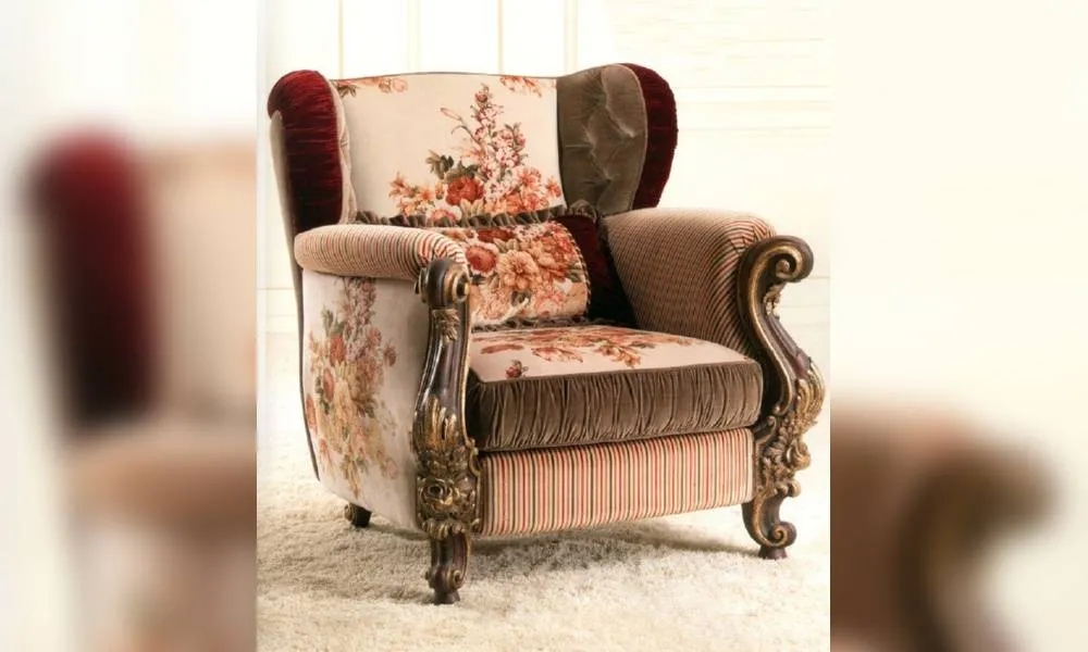 Кресло. Декорировано резными элементами. Наполнение - полиуретан. Возможны другие варианты обивки.