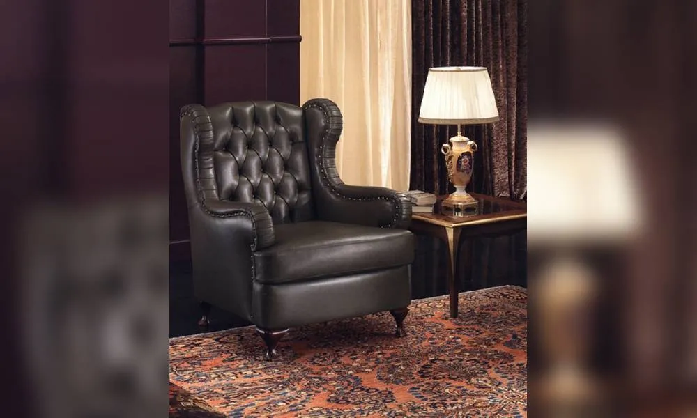 Кресло. Спинка обита в технике капитоне. Возможны другие варианты отделки и обивки, в том числе в ткани клиента.