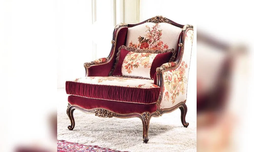 Кресло. Украшено резьбой. Возможны другие варианты отделки и обивки, в том числе в ткани клиента.