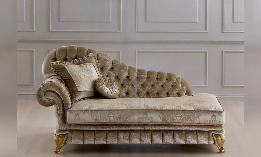 Кушетка с резными ножками. Спинка обита в технике капитоне. Возможны другие варианты отделки и обивки, в том числе в ткани клиента.