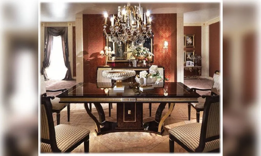 Прямоугольный обеденный стол. Декор ручной работы. Возможны другие цветовые варианты отделки.