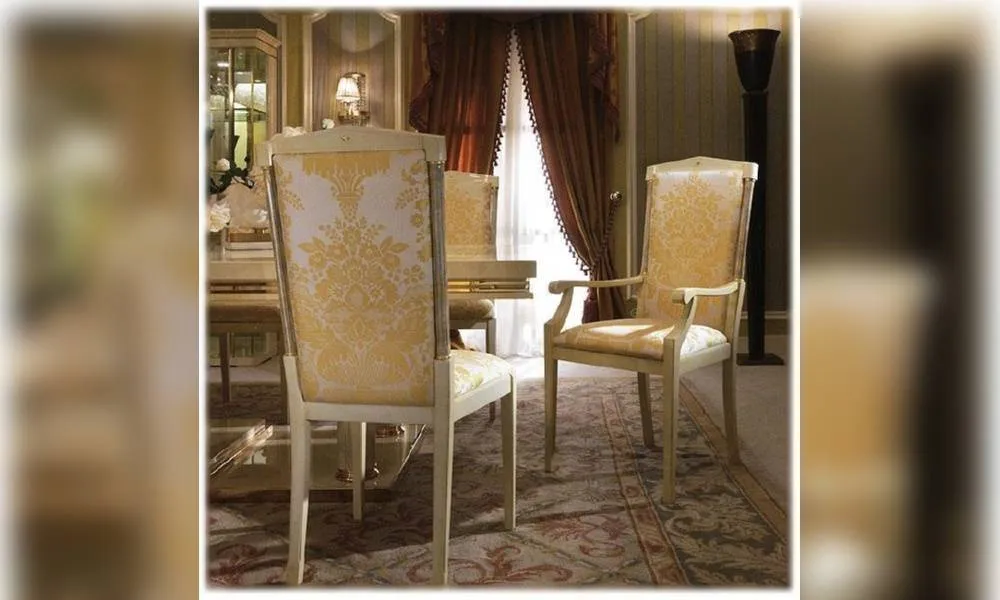 Стул с подлокотниками, высокая и мягкая спинка. Декор ручной работы. Возможны другие цветовые варианты отделки.